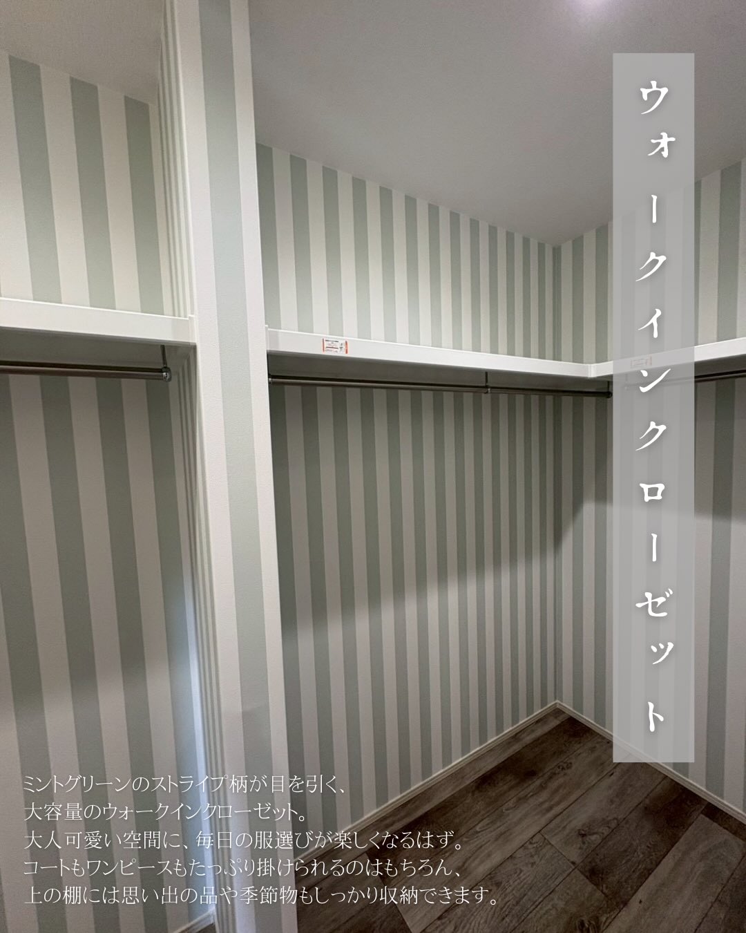 玄関の大型クローゼットや、大人可愛いミントグリーンのウォークインクローゼットなど、「あったらいいな」が形になっています。