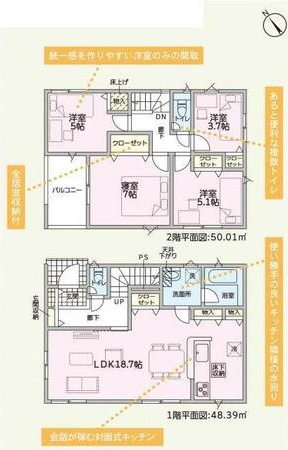 | 設備 | カウンターキッチン システムキッチン 床下収納 モニタ付インターホン ディンプルキー 防犯カメラ 複層ガラス 浄水器 IHクッキングヒーター 3口以上コンロ 浄化槽 浴室暖房 浴室乾燥機 ルーフバルコニー 人感センサー付照明 火災警報器(報知機) 温水洗浄便座 トイレ2ヶ所 |