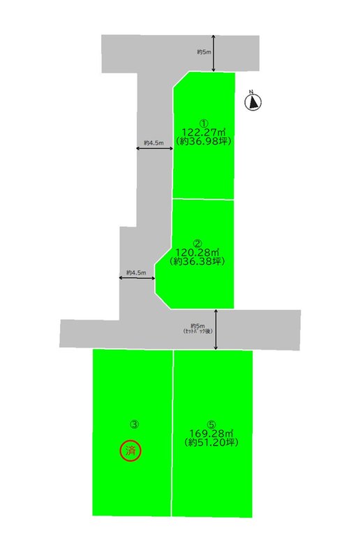 土地面積120.28m2~169.28m2(36.38坪~51.20坪)(実測)