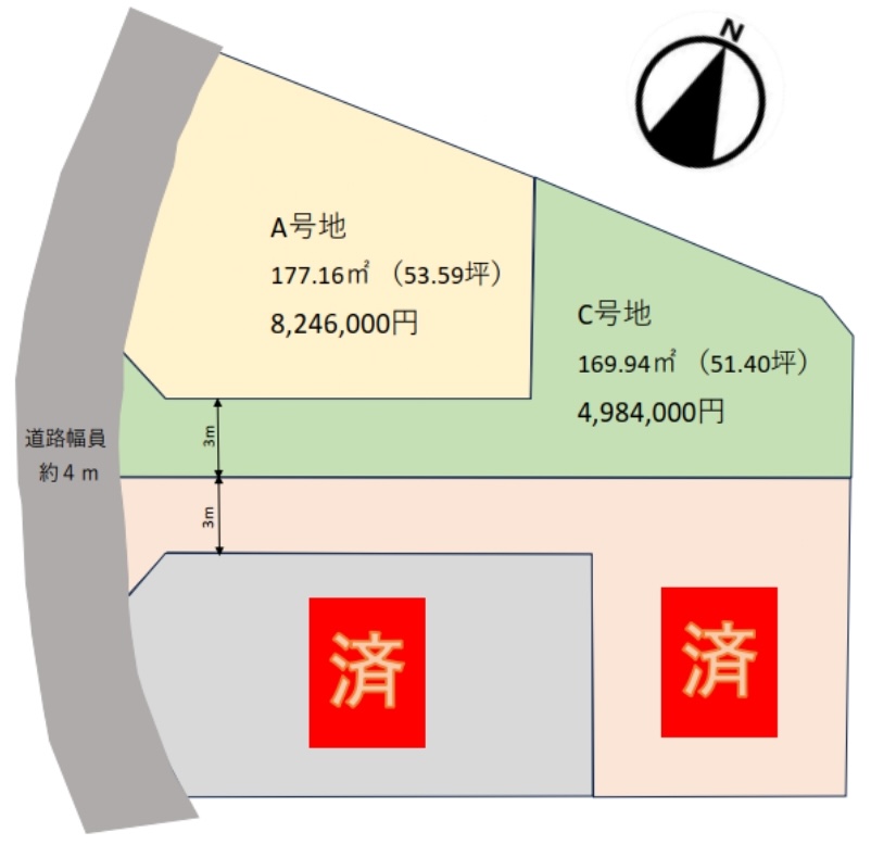 備考 | 下水道受益者負担金:73,500円+114円×土地㎡ 上水道加入分担金:220,000円 境界ブロック2段+フェンス:15,000円/㎡(税別) |